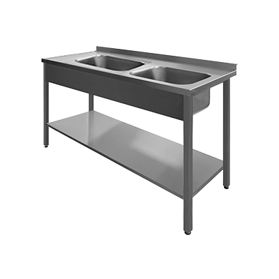 - Особенности: двойная ввареная цельнотянутая мойка, борт, отверстие для крана, сплошная полка, регулируемые опоры